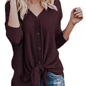 Women’s Casual Long Sleeve V Neck Loose Tunic T Shirt Blouse Tops Wine Red,S