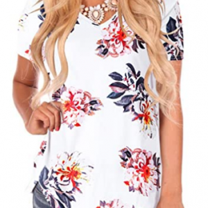 NIASHOT Women’s Short Sleeve Loose Casual V-Neck Floral T-Shirt Tops