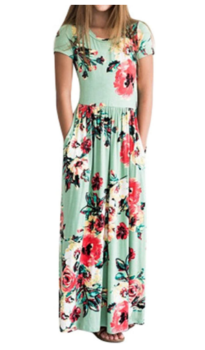 Fashspo Girl’s Maxi Dress Long Sleeve Floral Casual Printed Empire Waist Long Party Dress with Pockets 2-10T